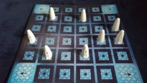 お互いのオバケ駒を交互に動かしていって、勝利条件を満たすことが目的となります。